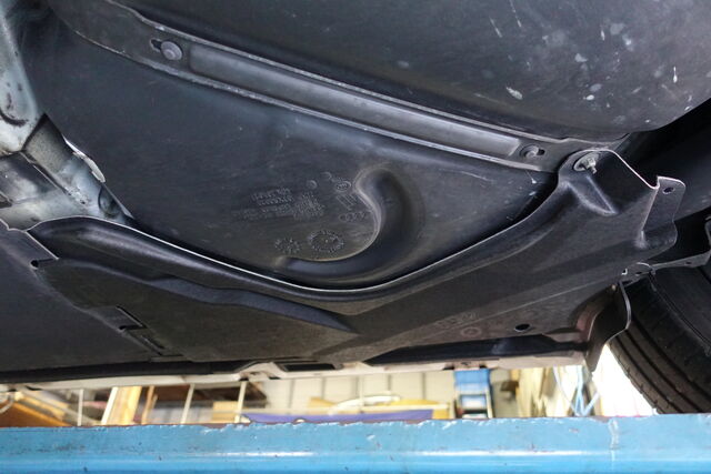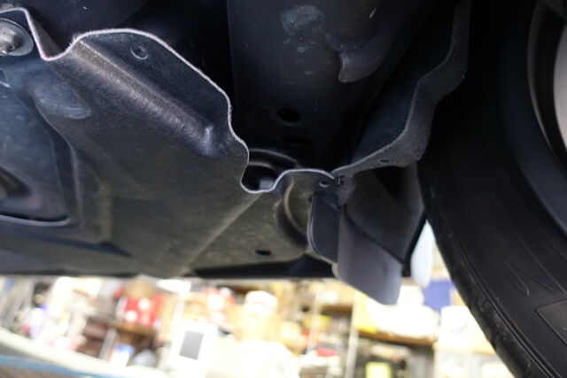 2014年式アウディA6 オールロードクワトロ(以下ARQ)昨年末に「右リアのアンダーカバーをひっかけてしまい、垂れ下がっている」と電話連絡いただき、ご入庫。リフトアップして確認すると右リア フェンダーインナーライナーのすぐ前にあるアンダーカバーが千切れておりました。 フェンダーインナーライナーも千切れております。