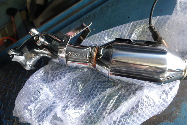 スタート早々 遮熱板の取外しに苦労し、次にタービン部のナット2個とボルト2本がなかなか緩まなくて・・・。 ここは整備書によると40Nmなんですが、これの倍以上ではないか?といった状態。