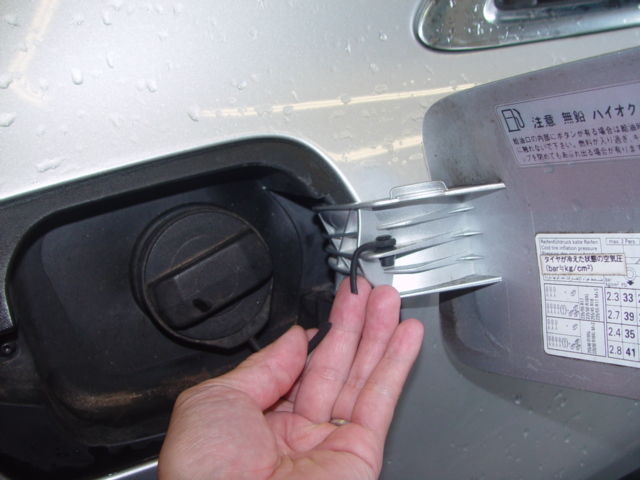 写真1枚目 アウディA8の燃料キャップ(フューエルフィラーキャップ)のひもが、給油時に千切れてしまったそうです。
