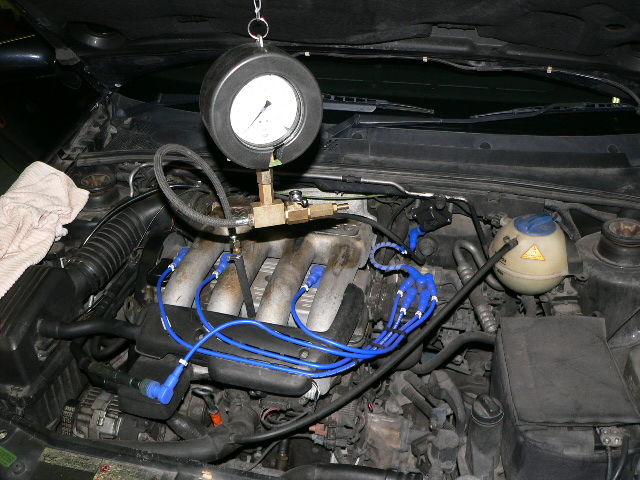 これから樹脂製の蓋を取ってみると みごと無事に外せましたので、とりあえずスペアパーツ有りとなりましたので、そ〜っと外して、燃圧計を接続。 (写真1枚目)