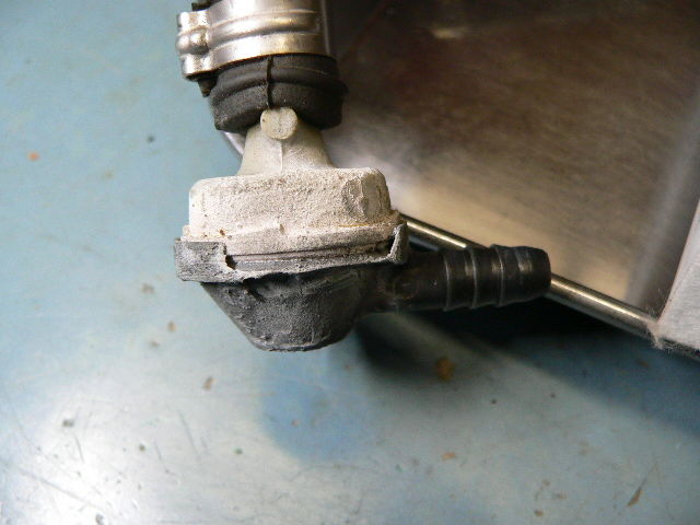 写真3枚目は、エアーバルブ付きホースのバルブ部分。 樹脂が劣化し、ポロポロと砕けてしまうのです。 すでに一部無くなっているのが判ります。