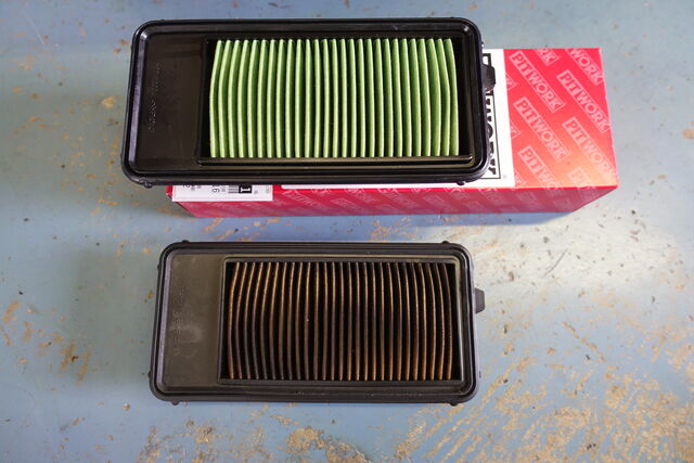 写真3枚目 エアクリーナー新旧。 2年前にも同じような写真を撮った記憶が・・・ありました。