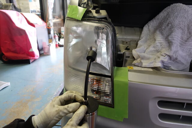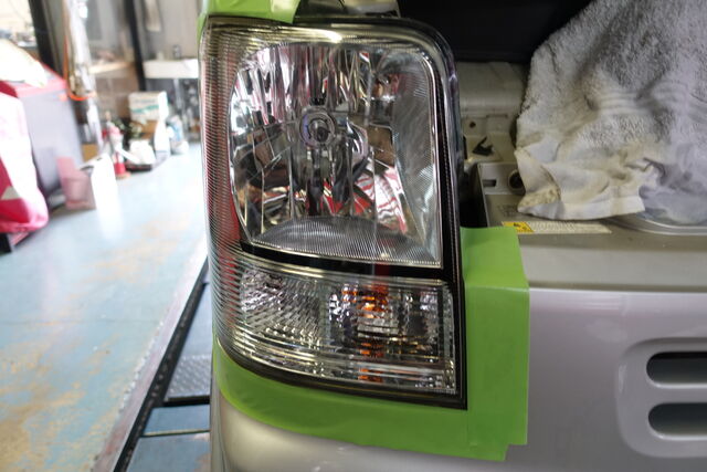 続いてヘッドライトが写真2枚目のとおり、くすんでおりましたので磨いてみます。