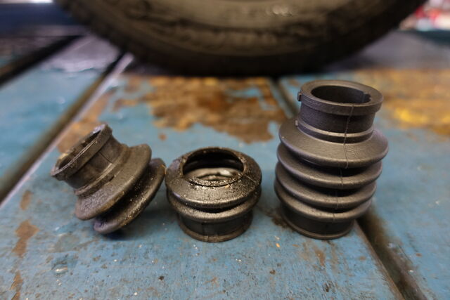 プロペラシャフトのヨークブーツが破れておりましたので交換するのですが、このパーツが単品設定無し、シャフトASSYとなっておりました。 これでは、あまりに勿体ないので他車種用のスズキ純正パーツを流用します。