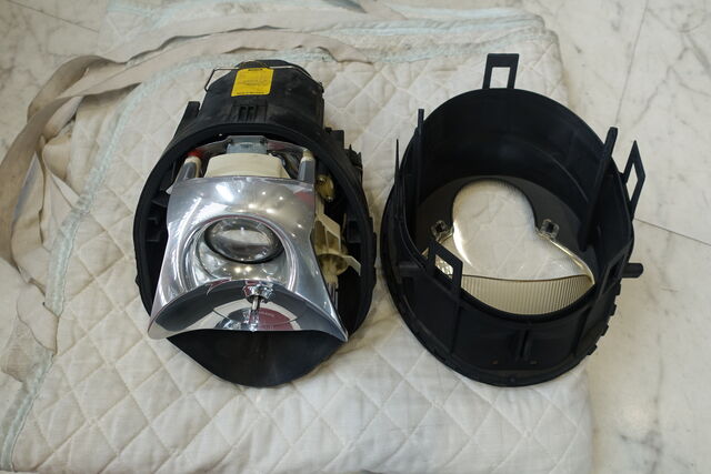写真3枚目 プロジェクター部を単体にし、内側も半分だけ磨いてみました。
