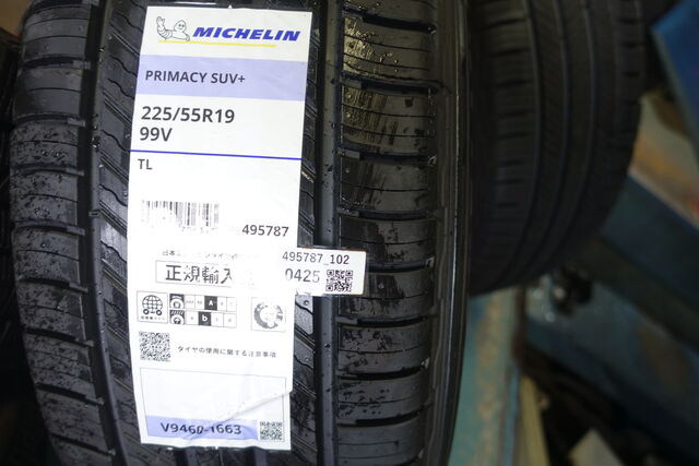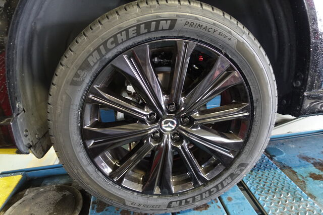 令和4年式(2022年)マツダ CX-5 タイヤ交換で ご入庫いただきました。サイズは225/55-19 で、ミシュランのご指定をいただき、PS4SUVとプライマシーSUV+の見積もりから、選んでいただいたのは、後者のプライマシーSUV+