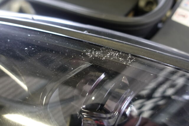 2018年式 ポルシェ マカン GTS 先週からお預かりしてヘッドライト磨きをしております。状態は写真1枚目から3枚目のとおり。 一部分だけポロポロと表面(コーテング面)が剥がれている感じ。 それ以外の部分はクラックも無く綺麗です。