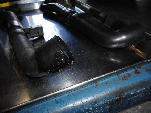 作業中にメカニックが 「ブローバイホースが破れていますよ〜」と。