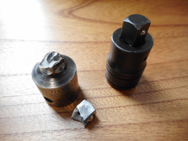 写真3枚目は、スナップオンの 1/2-3/8 変換アダプター なんですが、昨日ボッキと折れてしまいました。
