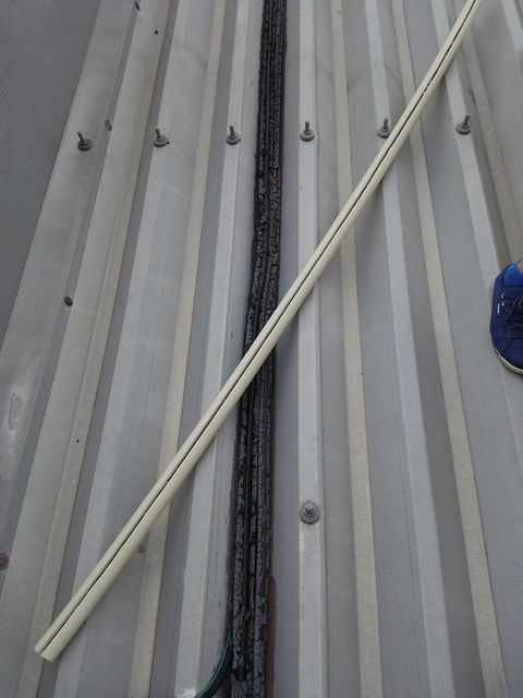 去年の時点で、かなりボロボロだったので、換えるつもりでいましたが、近くのホームセンターにスリット入りで内径が合うものが置いてなく、通販で購入しようと 調べるも、断熱材の種類(内径)が何種類もありましたので、もう一度屋根に登り 測定してから、注文することに・・・・