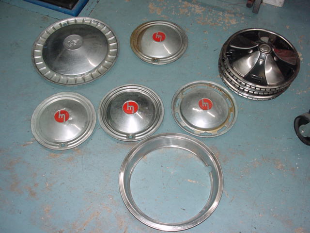 今日は仕事が暇だったので、実家のガレージ(築60年以上のぼろぼろ、さびさび)内の整理をしようと突入(笑)しました。クモの巣と戦いながらゲットした物は、写真のホイールキャップたちです。