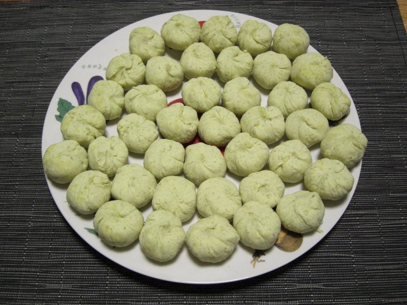 私は、ひたすら すりこ木で潰す係り、家内が包んで丸める係り。