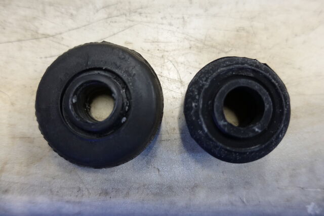 昨日からの続き作業で、今日はフロント サスペンション系です。いきなりですが、写真1枚目は、上側が外したバンプラバーとダストブーツ、下側が新品。