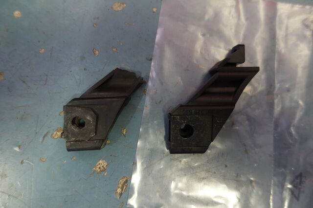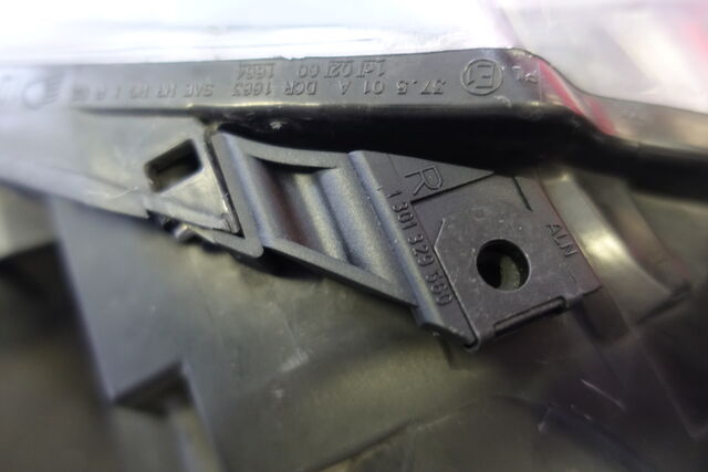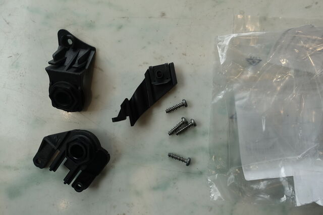 写真4枚目 リペアキット取付。 タッピングビスを付ける穴が予めヘッドライト本体に開いていました。 折れる場所が想定(設定)されているんですね。