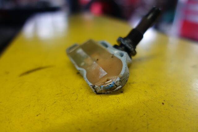 Á᮸ò´¹ºî¶È¤ò¿Ê¤á¤Þ¤¹¤¬¡¢¤³¤Î¼Öξ¤ÏTPMSÉÕ¤¤Ç¤¹¤«¤é¥»¥ó¥µ¡¼ÍѤΥ´¥à¥·¡¼¥ë¤ò4¸ÄÍѰդ·¤Æ¥¹¥¿¡¼¥È¡£¡¡º¸¥¿¥¤¥ä¤¬³°¤ì¤Æ¥´¥à¥·¡¼¥ë¸ò´¹¤·¤Æ¥»¥ó¥µ¡¼¤òÉÕ¤±¤ë¤Î¤Ç¤¹¤¬¡¢¤³¤³¤Ç¼Ì¿¿1ËçÌÜ¡¢2ËçÌܤΠ·ç¤± ¤òȯ¸«¡£¥»¥ó¥µ¡¼¤Î³ÑÉôʬ¤¬·ç¤±¤Æ¤ª¤ê¡¢ÆâÉô¤Î´ðÈÄ¡©¤¬¸«¤¨¤Æ¤¤¤Þ¤¹¡£¡¡¤Á¤Ê¤ß¤ËÇËÊҤϥ¿¥¤¥äÆâ¤Ë¤¢¤ê¤Þ¤»¤ó¤Î¤Ç¡¢²áµî¤Î¥¿¥¤¥ä¸ò´¹»þ¤Ë·ç¤±¤¿¤Î¤Ç¤·¤ç¤¦¡£