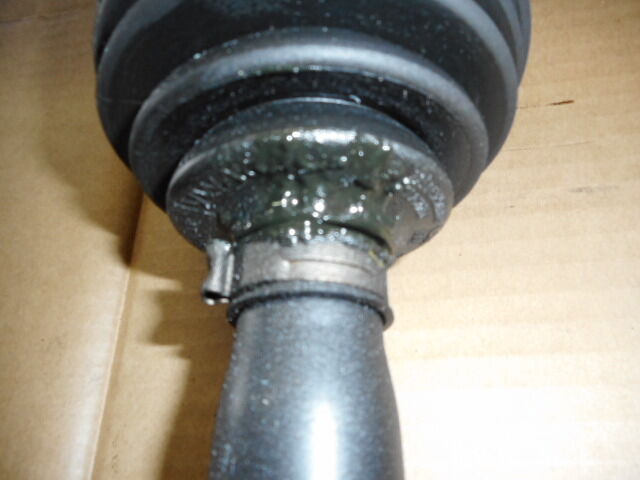 写真2枚目 車両から外れた左ドライブシャフトASSY。 バンドの横あたりから裂けている状態です。