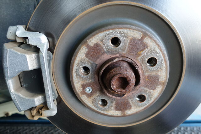 ホイールを外すと写真1枚目のとおり ハブが錆びていましたので、磨いて(ケレンして)(写真2枚目参照)、スレッドコンパウンドを塗布。
